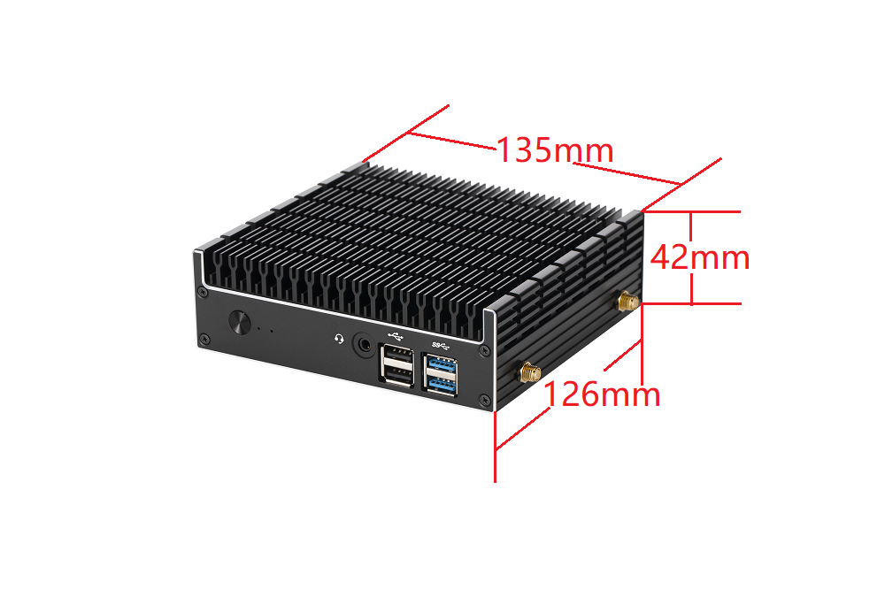 主機(jī)后部IO: 1*DC IN (5.5*2.5mm圓孔) 1*RJ45 2*USB3.0 1*HDMI2.0 1*DP 1.2 1*Type-C 主機(jī)側(cè)面IO: 2*天線接口 主機(jī)前面板IO: 電源開關(guān) 1*POWER LED 1*HDD LED 1*Audio(3.5mm MIC+SPK) 2*USB2.0 2*USB3.0 |